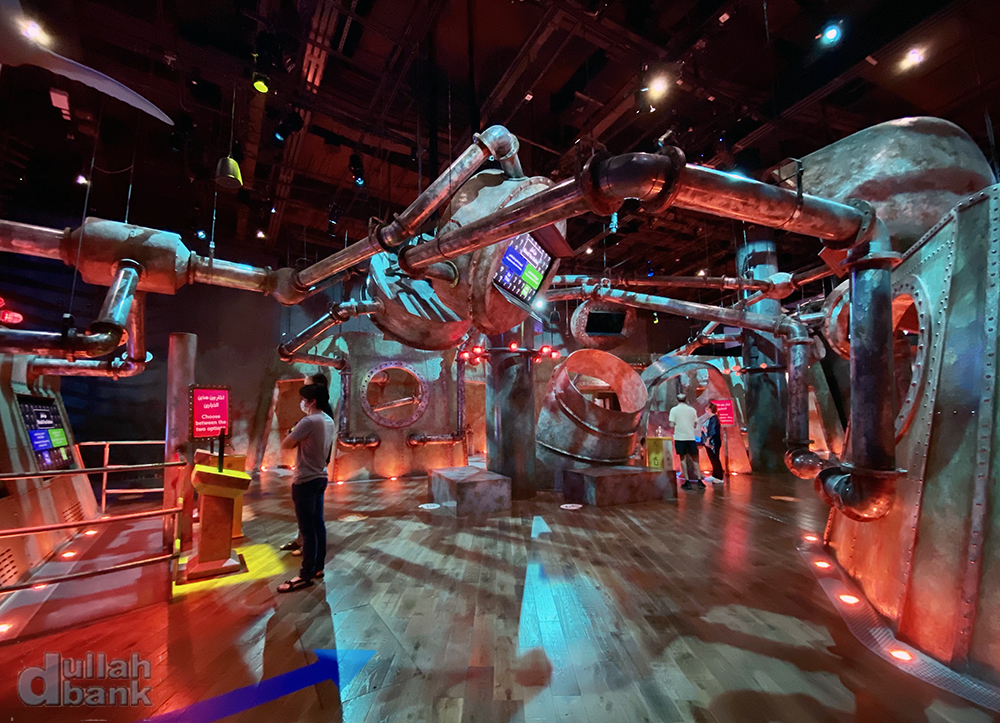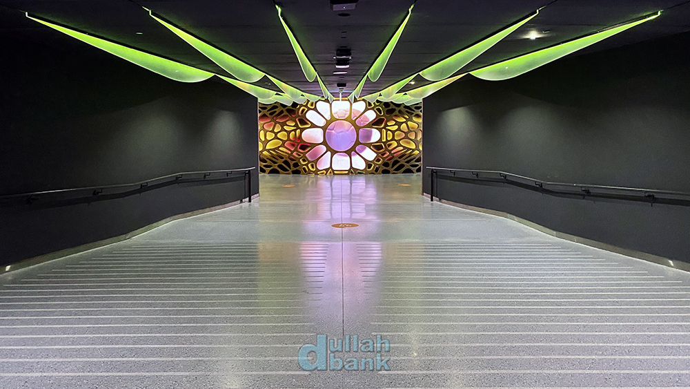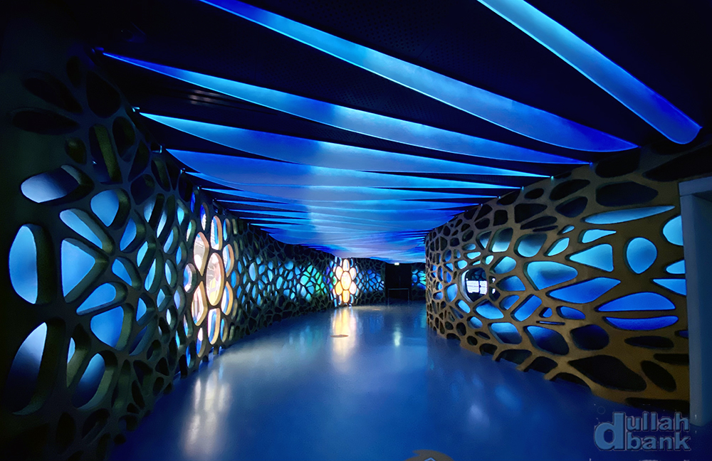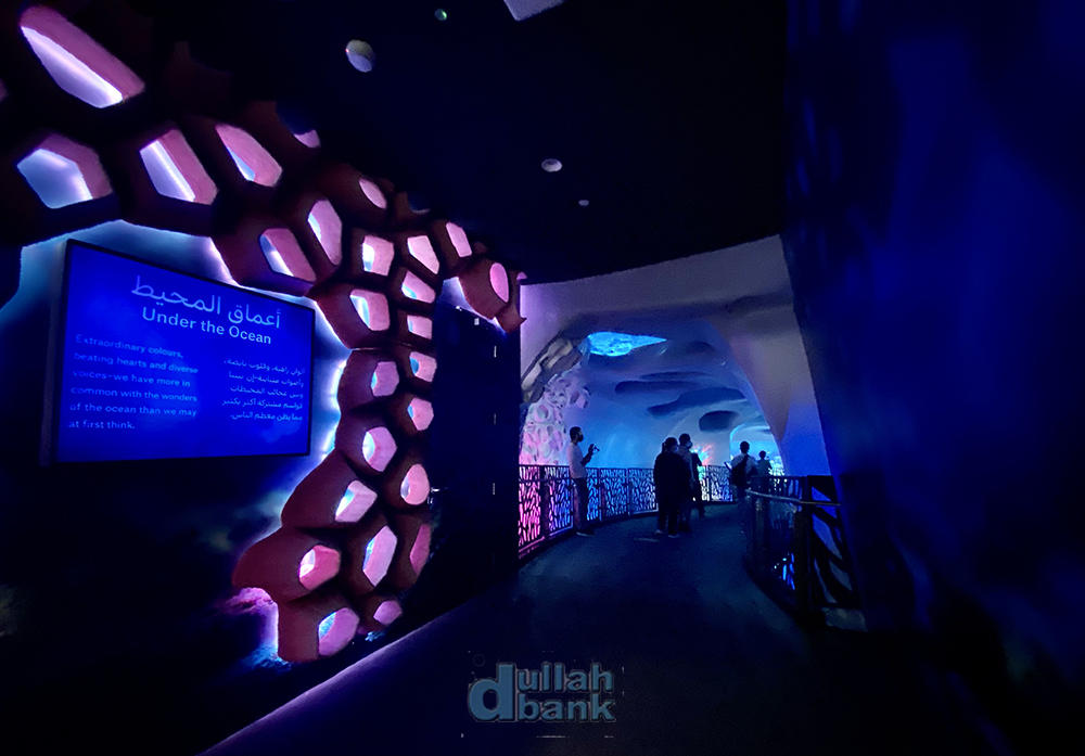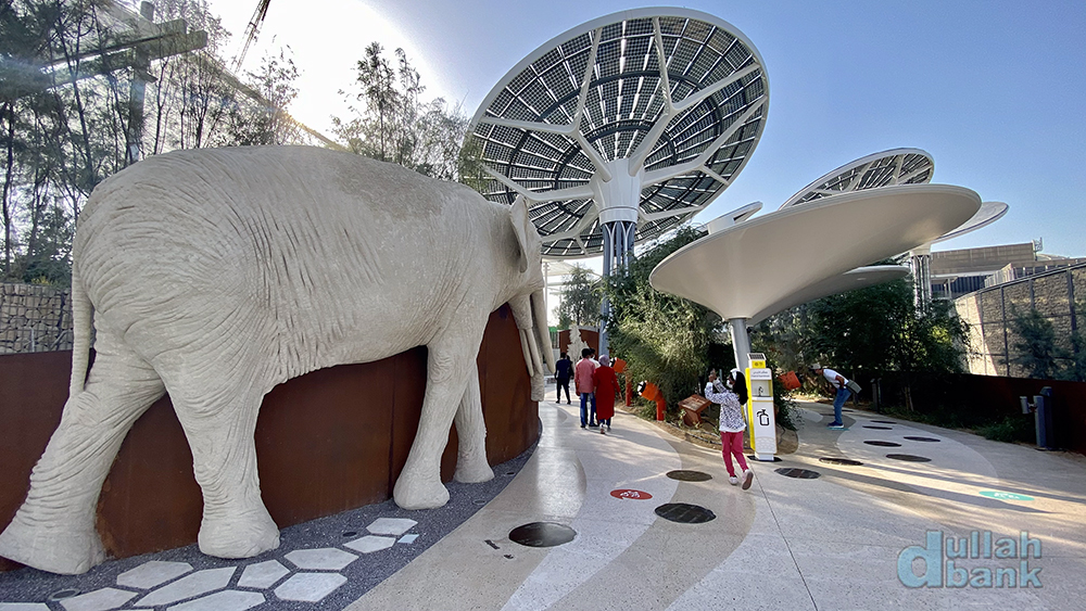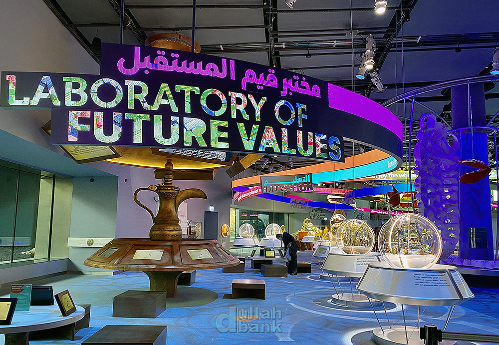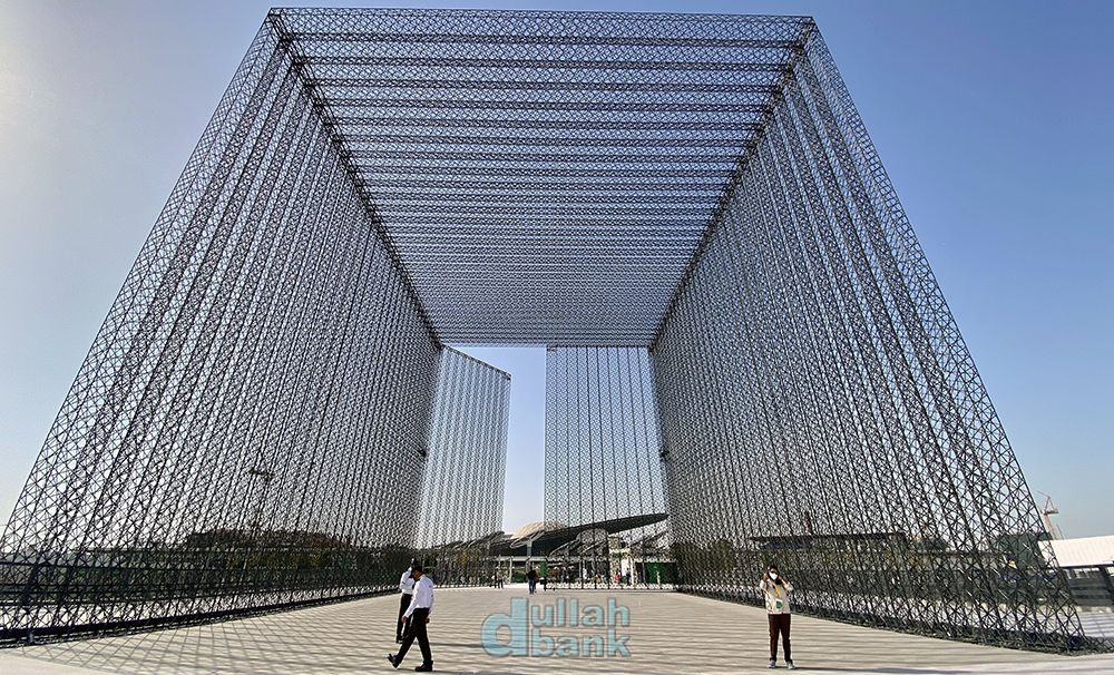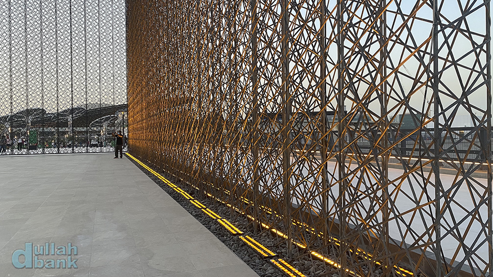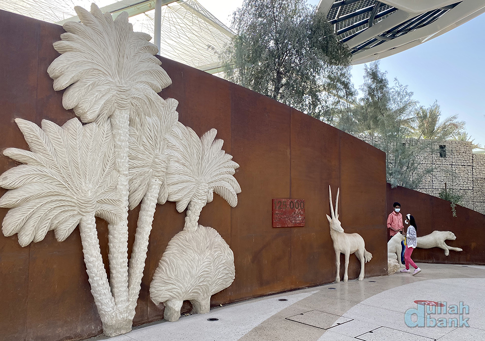 각 테마관의 입구에는 영국에서 활동하는 건축가 아시프 칸이 설계하여 초경령 탄소섬유 소재를 사용해 아랍의 전통 건축양식인 마슈라비야를 초현실적인 이미지로 형상화했다는 높이 21미터, 폭 21미터, 길이 30미터의 포털이 방문객을 맞이합니다.