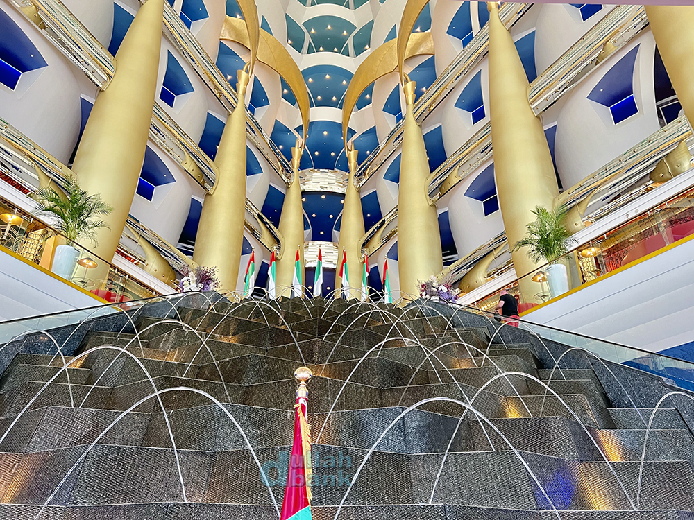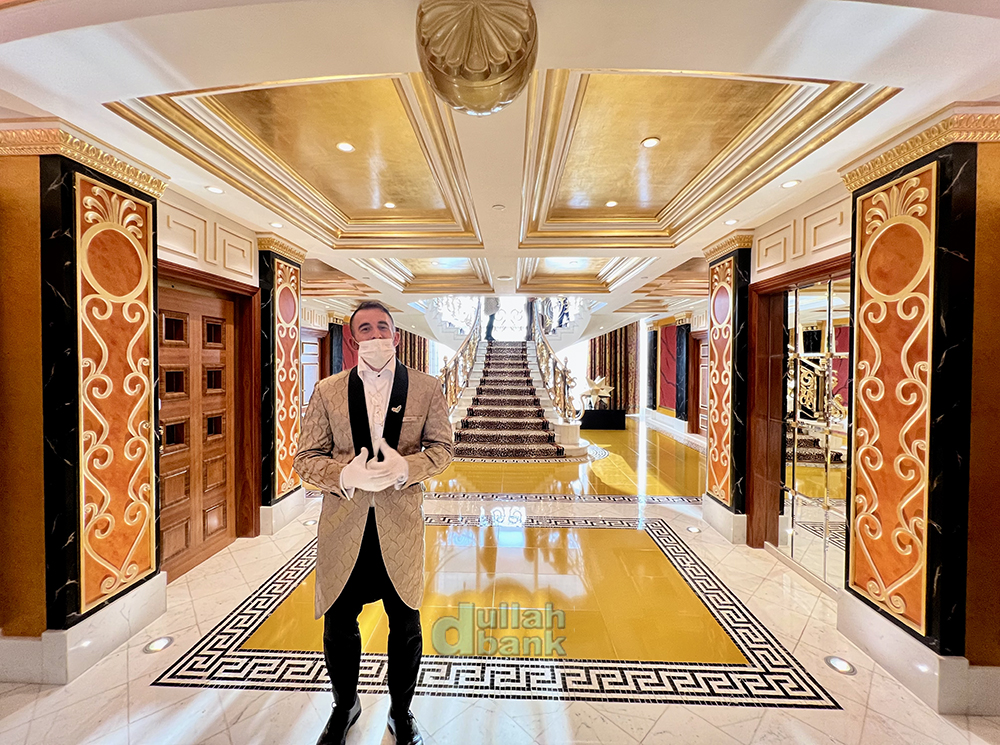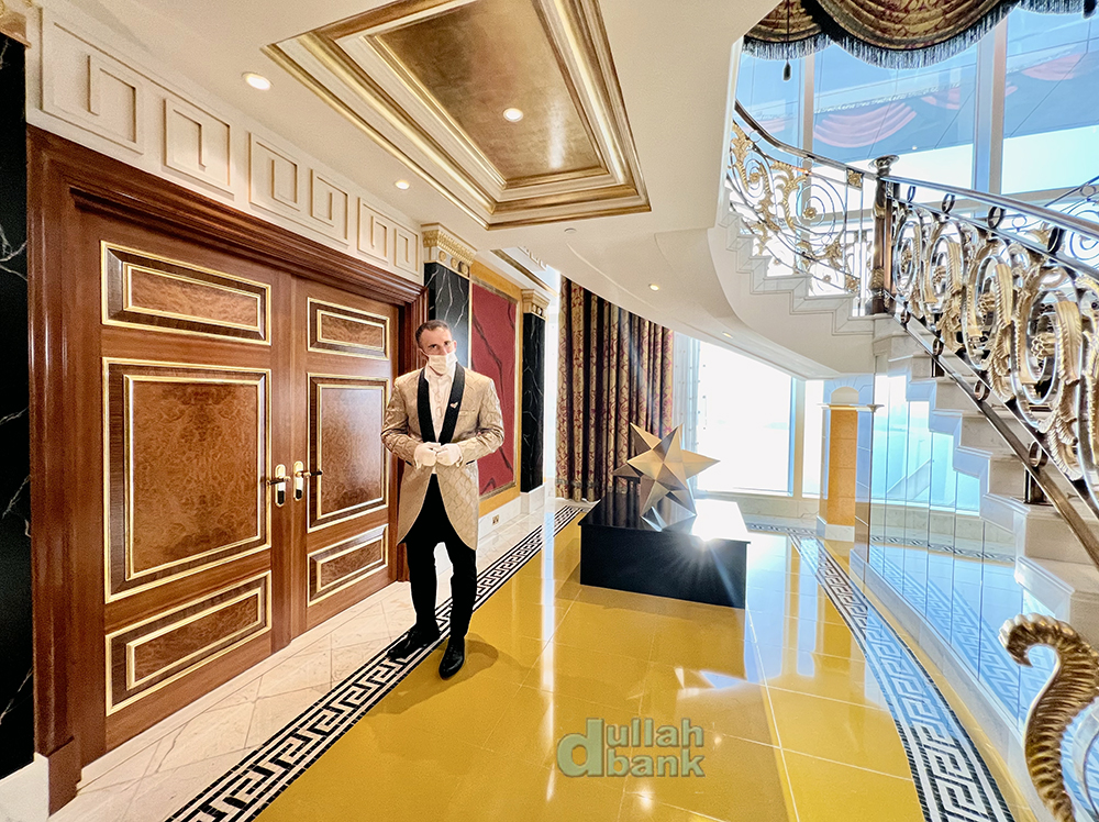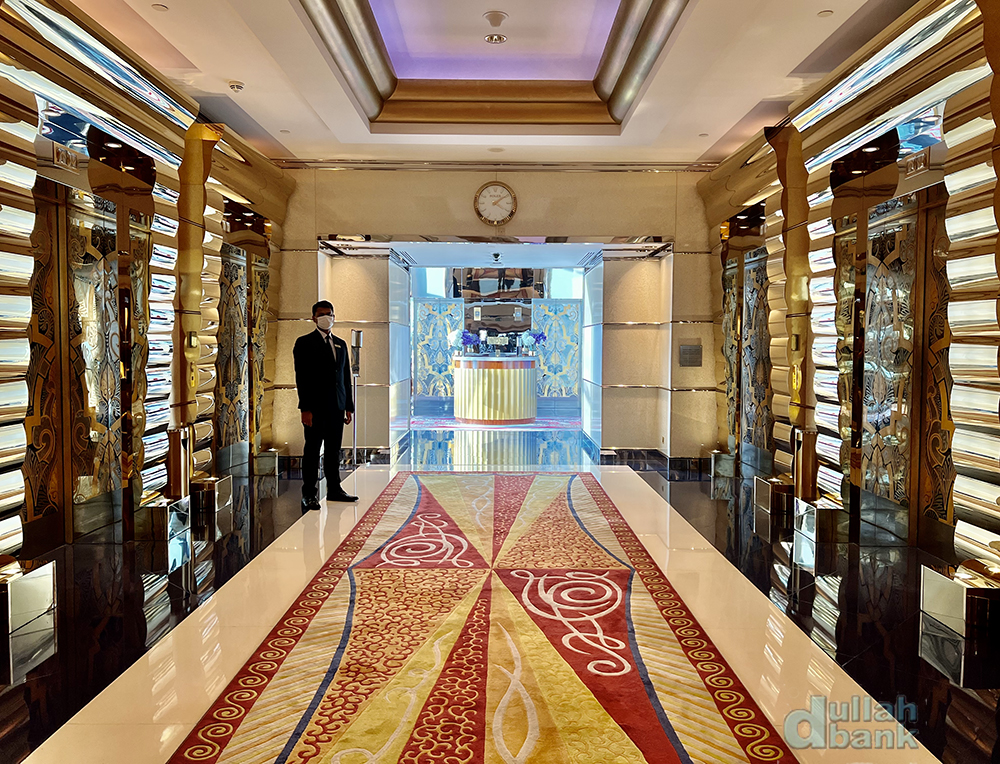 문을 열면 가이드를 위한 버틀러의 환대와 함께 어마무시한 내부 통로를 마주하게 됩니다. 부르즈 알아랍은 투숙객들의 편의를 위해 버틀러를 배치합니다.