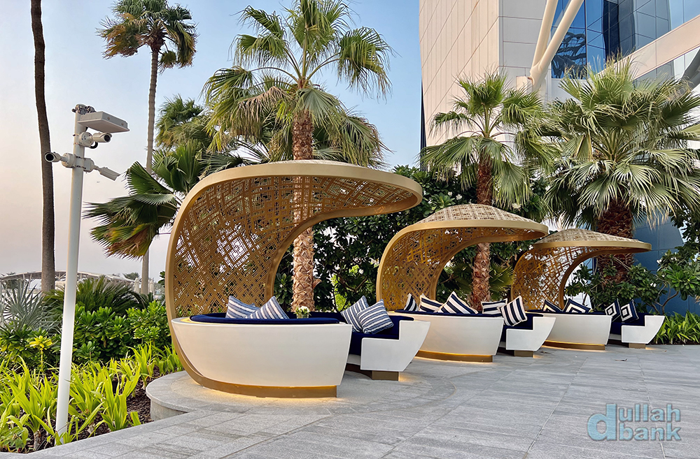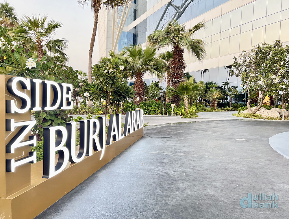 출구로 나오면, 인사이드 부르즈 알아랍 투어를 위해 새로 마련된 야외 라운지 우마가 있습니다.