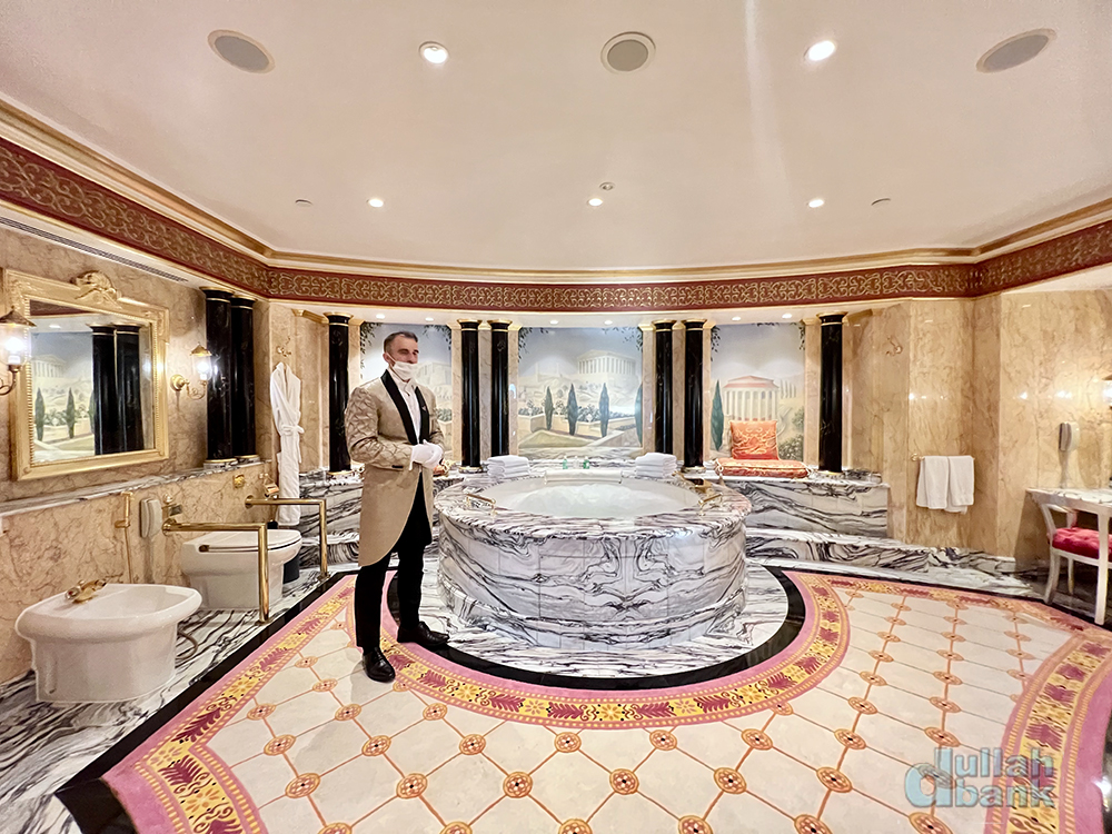 럭셔리 호텔 리조트 내 투숙객 구역과 일반 방문객 구역을 나누는 곳은 봤어도 유료로 진행되는 호텔 투어 프로그램을 이용해보는 건 처음인데, 어마무시한 스위트룸도 스위트룸이지만 로비에서 2502호실까지는 로비 직원, 로얄 스위트룸 안에서는 버틀러, 전시실로 개조된 2501호실 내에는 전시 공간에 따라 배치된 직원 등1시간 반 정도 진행되는 투어에 참여하는 가이드들이 상당히 많았던 것이 인상적이었습니다. 가장 싼 스위트룸을 비수기에 이용해도 투어비용의 10배 이상 든다는 점을 감안하면 (지금은 20배 이상;;;;;) 의외의 가성비가 있죠.