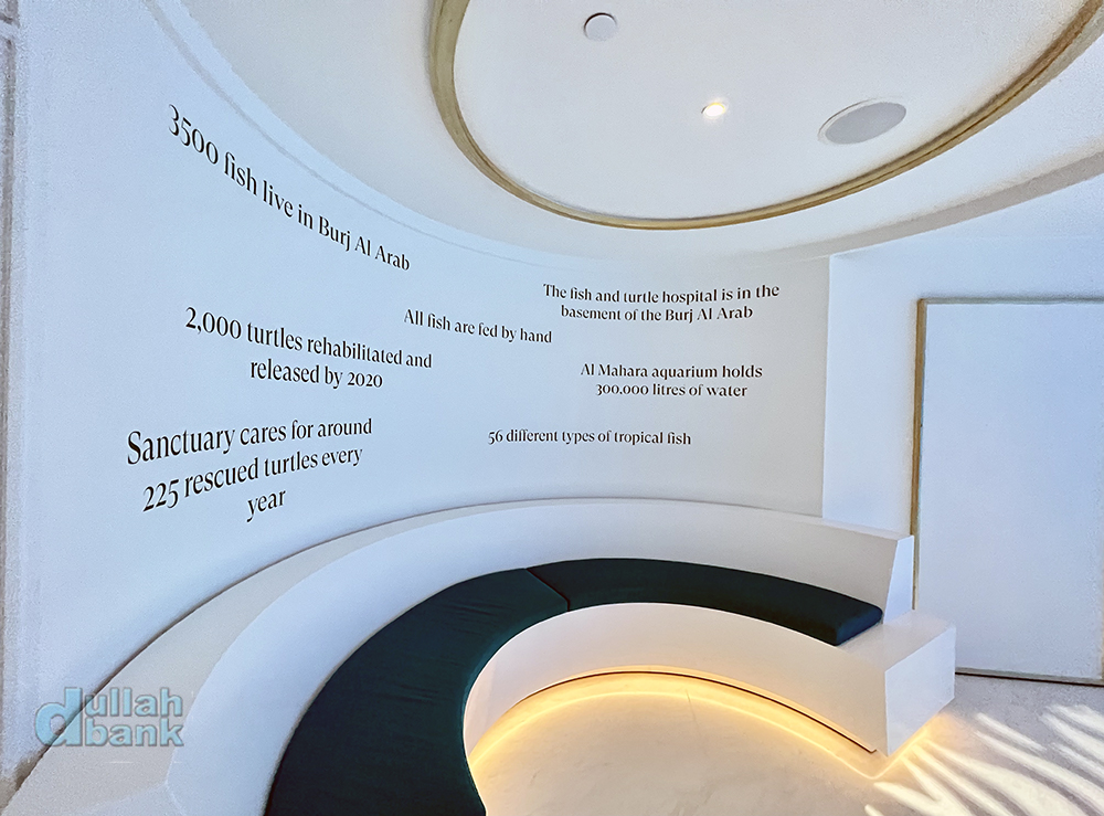 부르즈 알아랍 일대의 해양 생태계 보존 노력을 홍보하고 있습니다. 부르즈 알아랍 안에는 거북이 전용 병원이 있다고 하죠.
