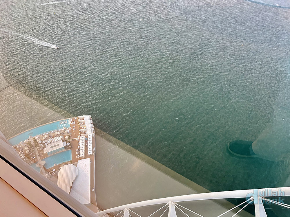 아래 보이는 초대형 플랫폼 테라스. 부르즈 알아랍 개장 이후 첫 확장구역인 이 테라스는 핀란드에서 공수해온 6개의 플랫폼을 조립해 만들어 2017년에 문을 열었으며, 두 개의 풀장과 라운지 살, 구찌 매장이 있습니다.