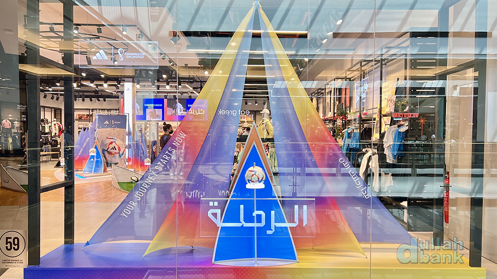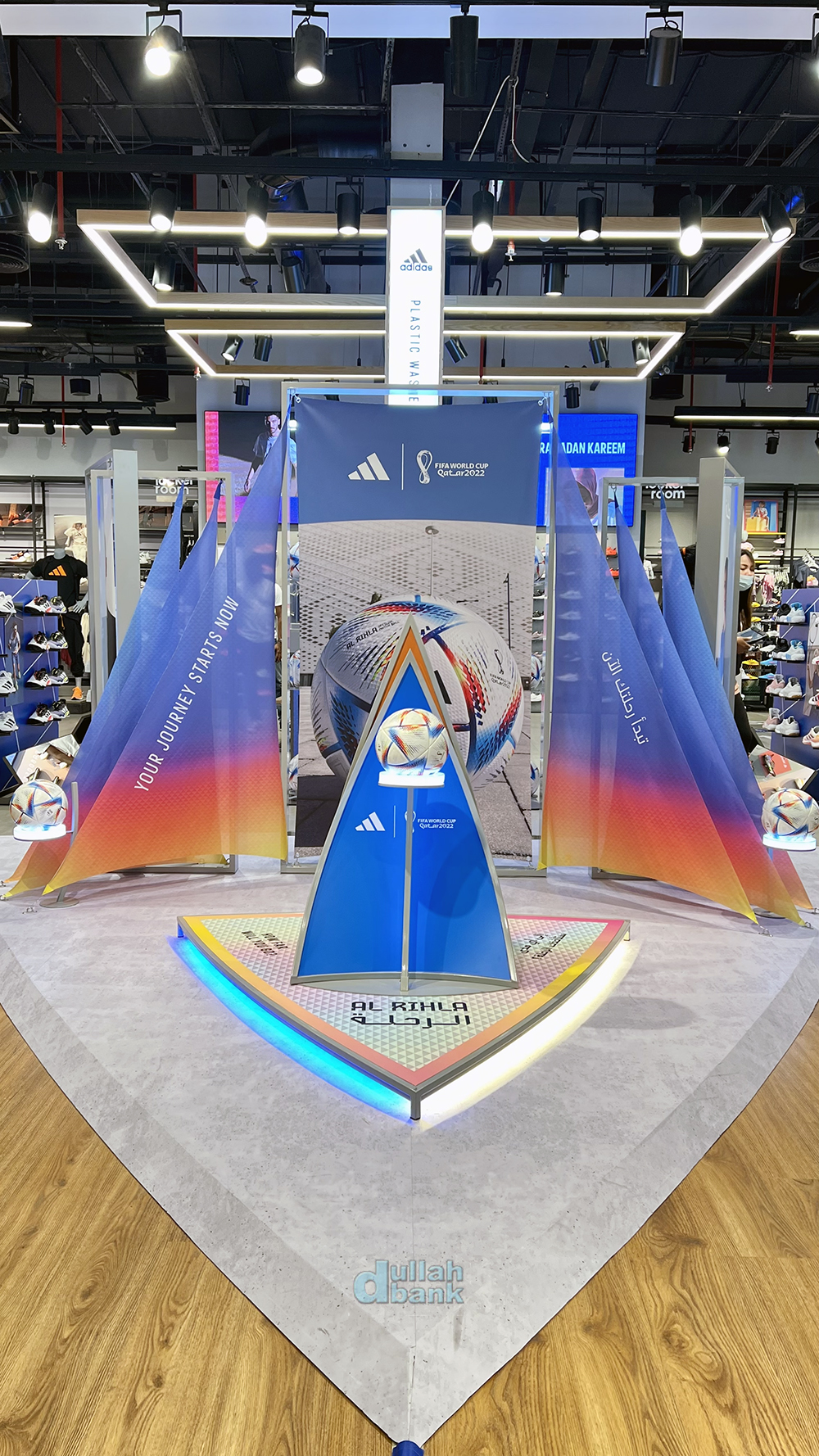 주말을 맞아 몰 오브 에미레이츠를 둘러보다 아디다스 매장 앞에서 시선이 멈췄습니다. 이틀 전 공개된 카타르 월드컵 공인구 알리흘라가 전시되어 있었거든요.