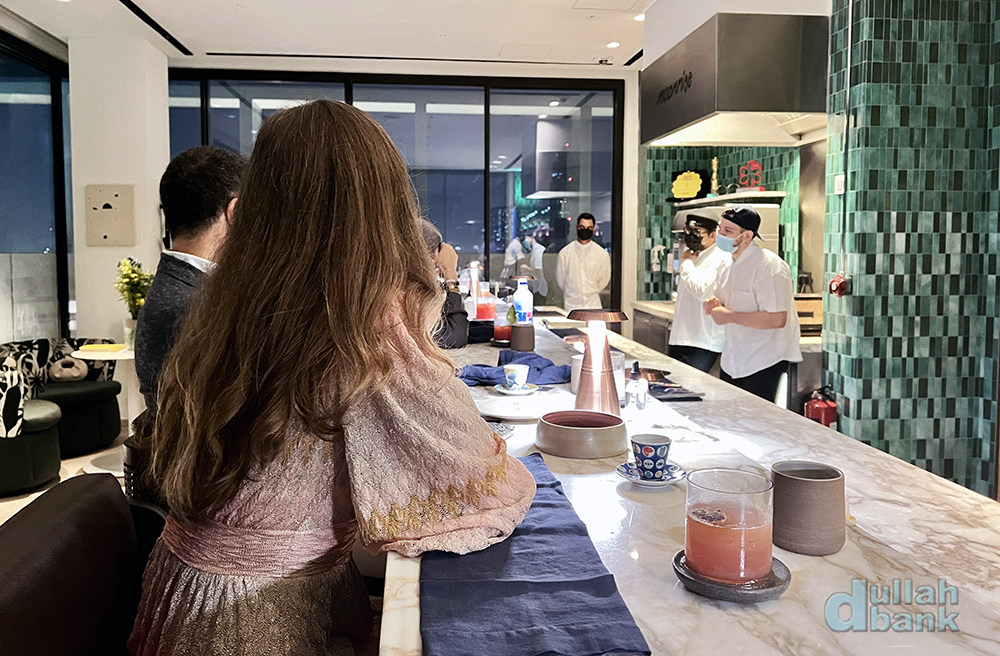 주방을 통해 셰이크 자이드 로드의 스카이 라인을 같이 즐길 수 있는 호세키와 달리, 문라이즈는 배경은 사이드와 뒤에 있고 오직 주방만을 바라보도록 되어 있습니다. ㄷ자형 바인 호세키와 달리 문라이즈는 일자형 바.