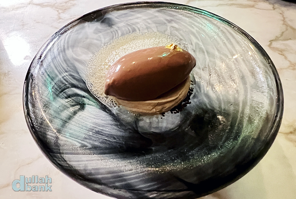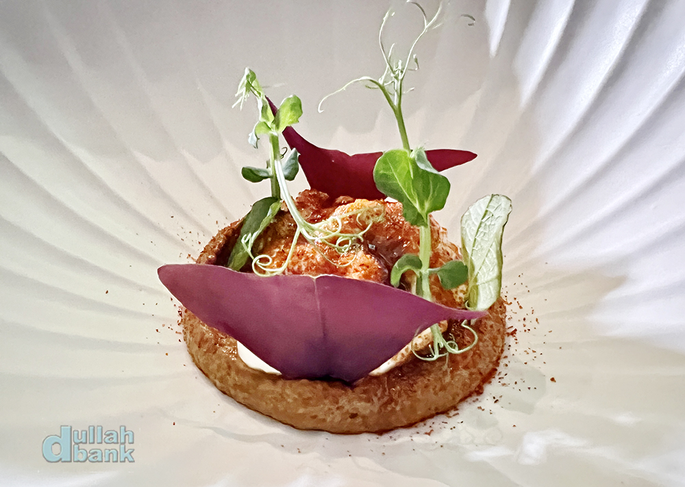 푸아그라, 대추야자, 사프론과 파인애플 츄트니, 시촨 칠리 오일로 만든 푸아그라 푸리는 한 입에 먹을 것을 권장하는데, 매콤한 뒷맛이 인상적이었습니다.