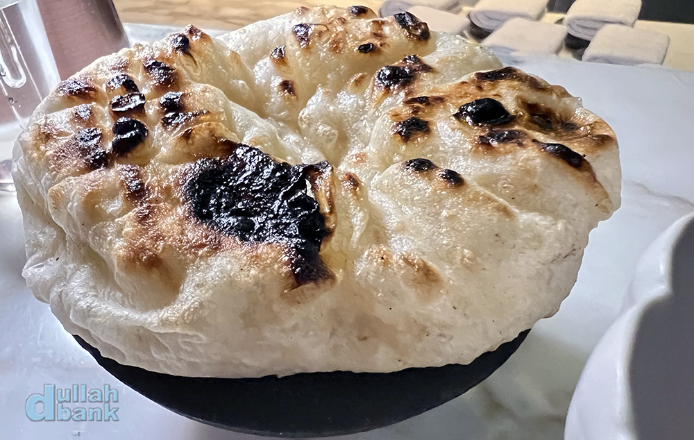 셰프가 두바이에서 태어나 자랐지만 시리아인임을 보여주는 메뉴로 시리아 알렙포에서 기원한 것으로 알려진 무함마라에 알렙포산 칠리와 샤워도우 미소를 섞어 유자가 가미된 스트라치아텔라을 얹었으며, 숯에 직접 구운 쿱즈와 함께 제공됩니다.