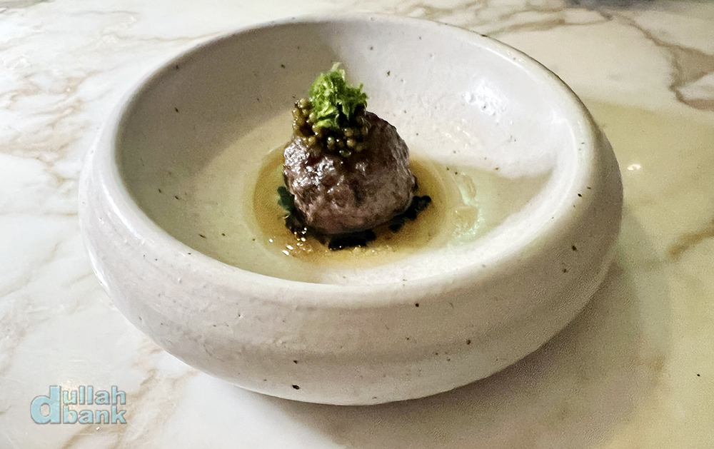 사로마 A5 (BMS 10+) 츠쿠네와 블랙 트러플 폰즈, 칼루가 케비어 위에 라임을 얹은 메뉴로 가장 맛있었습니다. 셰프 술레이만도 개인적으로 가장 좋아하는 메뉴라고 하더군요. 같은 타임에 식사하던 이마라티 여자 손님이 닭고기가 좀더 추가되었으면 좋겠다고 얘기하는 걸로 봐서 그 분에게도 잘 맞았던듯 싶네요.
