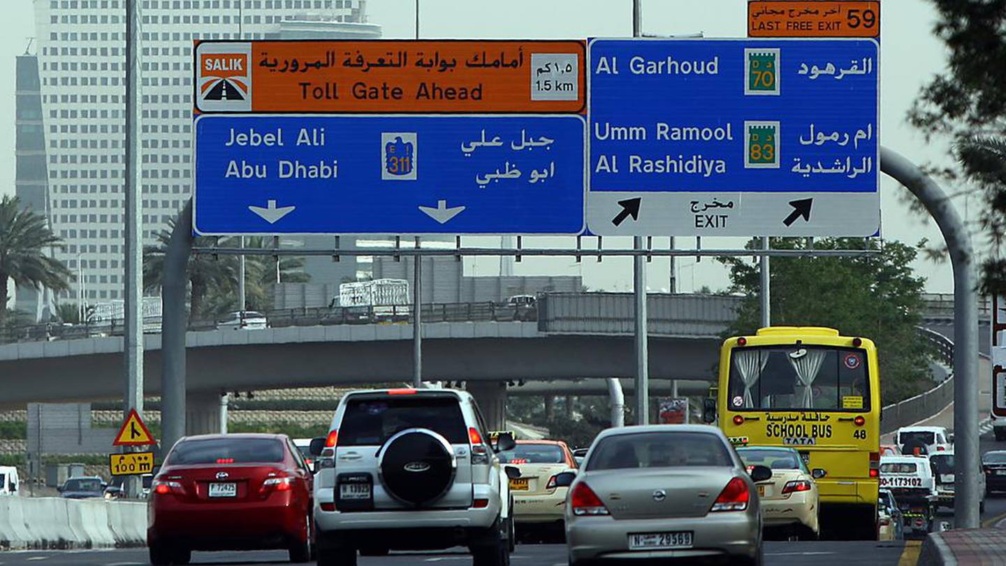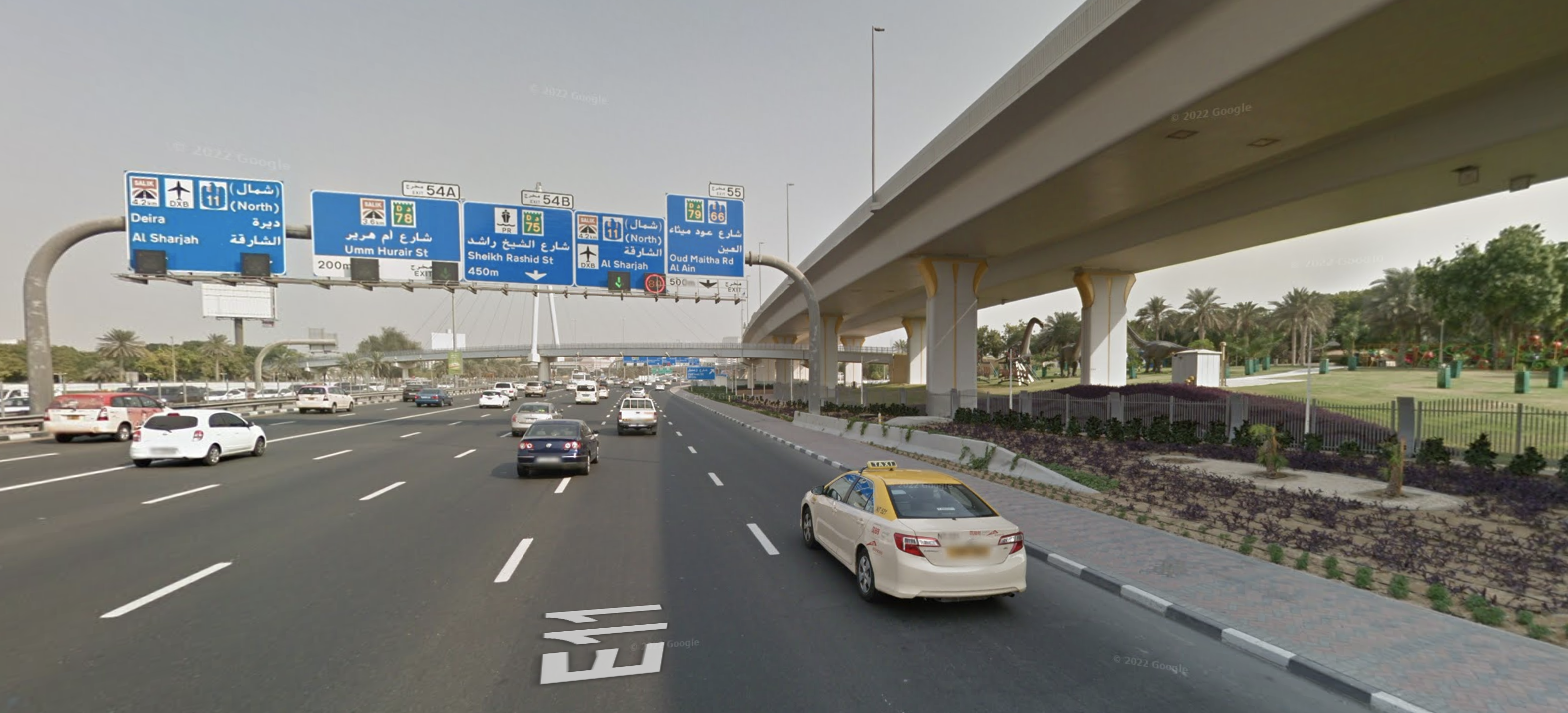 바로 아래 사진에서처럼 메인 도로에서만 길이 다섯 개로 나뉘는 것이 대표적인 예죠. 샤르자로 가는 길 (직행이냐 데이라 우회냐...) 두 개, 두바이 어딘가로 가는 길 두 개, 그리고 알아인 (아부다비)으로 빠지는 길 하나....