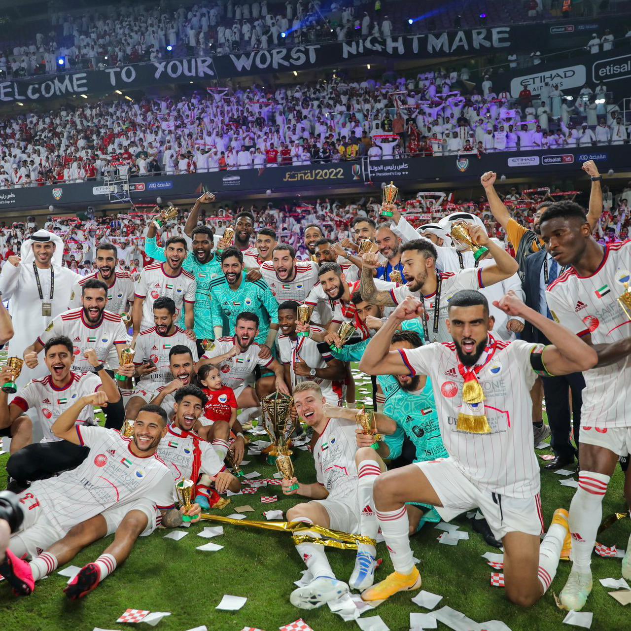 2) 5년 만의 통산 세번째 우승에 도전하는 알와흐다와 19년 만의 통산 아홉번째 우승에 도전하는 샤르자의 경기에서는 이번 시즌을 앞두고 비야레알에서 샤르자로 이적한 파코 알카세르의 선제골을 끝까지 잘 지킨 샤르자가 0대1 승리를 거두고 02/23시즌 우승 이후 19년만에 대통령컵 우승을 차지했습니다. 통산 아홉번째 우승에 성공한 샤르자는 10회 우승을 차지한 샤밥 알아흘리에 이어 대통령컵에서 두번째로 많은 우승을 달성한 팀이 되었으며, 지난 시즌 감독에 취임했던 코스민 올라로이우 감독은 샤르자 감독 부임 후 첫 우승 트로피를 들어올렸습니다.