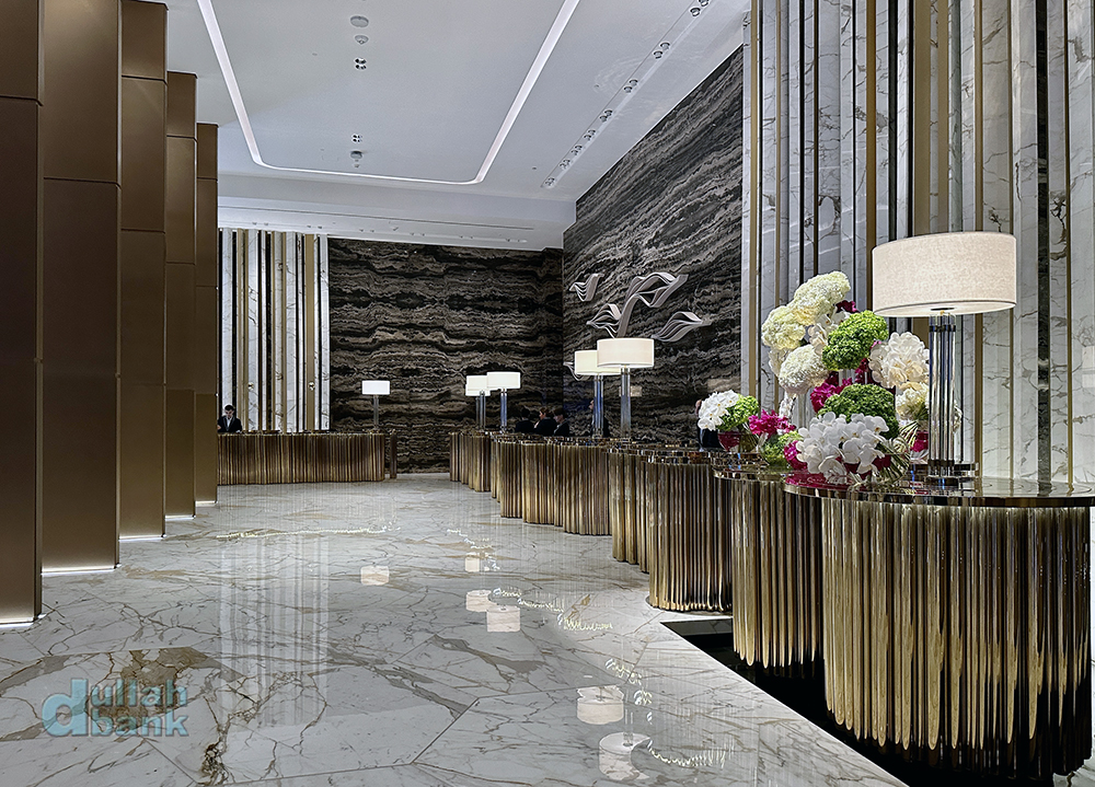 그리고 들어선 로비는 아틀란티스 더 팜과 확실히 달랐습니다. 아틀란티스 컨셉의 기이한 조형물과 뭔가 웅장해지는 듯한 아틀란티스 더 팜과 달리 아틀란티스 더 로열의 로비는 그런 컨셉 따위는 거의 없어진 모던한 실내공간과 더불어 건물 규모에 비해선 되려 작게 느껴집니다. 물론 정면에 설치된 통유리창이 개방감을 주고, 통유리창과 천장을 활용해 자연 채광을 적절히 활용한다는 점은 좋았지만요.