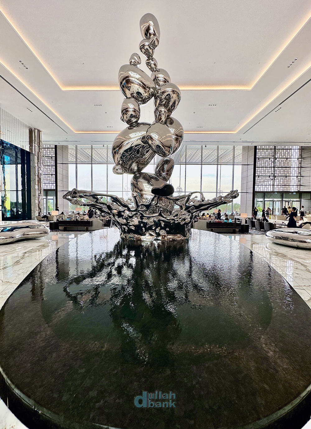 리조트 안에 들어와 방문객을 처음 맞이하는, 그리고 아틀란티스 컨셉과는 애시당초 거리를 두었음을 보여주는 높이가 약 11미터인 이 조형물의 이름은 "Droplet (작은 물방울)"으로 (더 팜 로비 중앙에 있는 조형물보다도 훨씬 작습니다...^^) 빗방울이 사막 위에 떨어지고 튀는 순간을 형상화했다고 합니다. 바닥이 사막 대신 물이긴 하지만요.