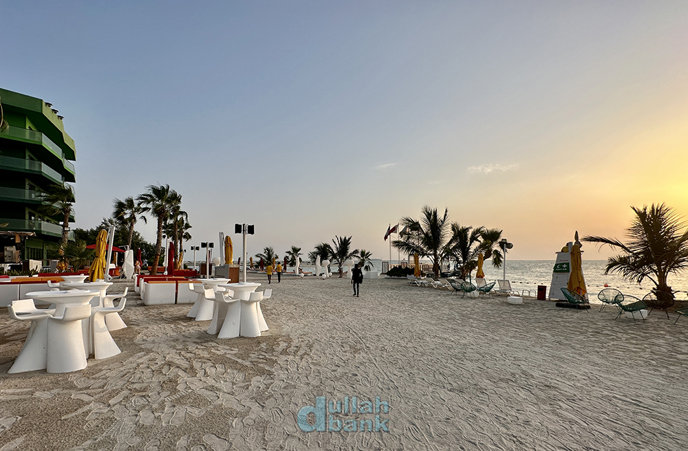 안전을 위해 야외 수영은 금지되어 있지만, 조명이 설치되어 있는 해변은 24시간 이용할 수 있습니다.
